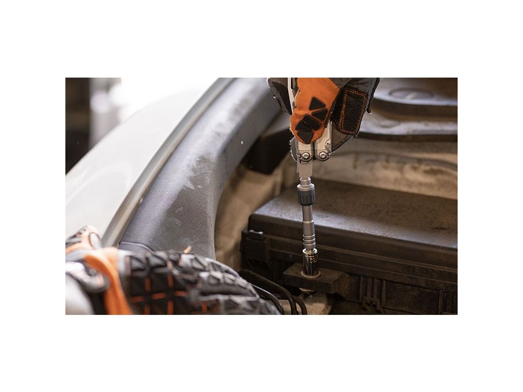 Ráčna vhodná pro práci s levostrannými i pravostrannými závity. Kompaktní systém umožňuje pohodlně pokračovat v rotačním pohybu / šroubování zatímco opačný směr je zablokován a nedochází k nežádoucímu povolování závitu. Třetí poloha ráčnu uzamyká a ta pak funguje jako klasický pevný nástavec na bity.