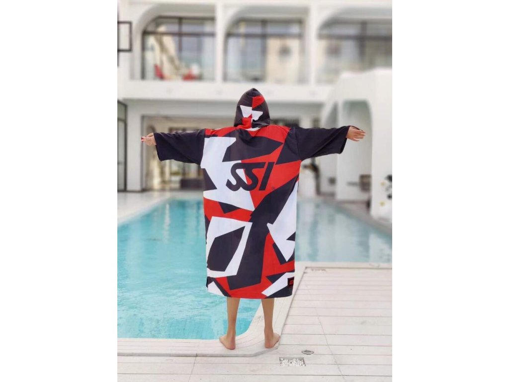 Pončo SSI je nezbytnou výbavou pro potápěče a milovníky vodních sportů. Je ideální pro udržení tepla a sucha po potápění nebo plavání!